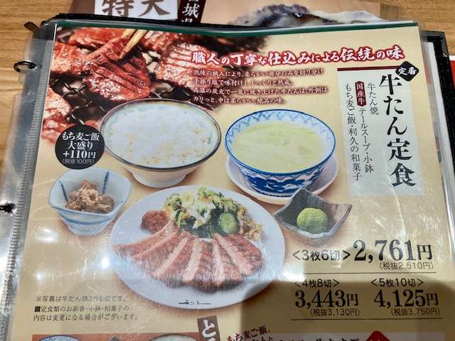 ここで「たんや 善治郎」が行列する理由が分かりました。善治郎は平日のランチセットが1,500円ぐらいで安いんです。もちろん安くて美味しいから人気なのだと思いますが、値段が安いのも人気の要因と思います(仮説)。