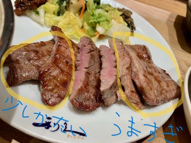 しかし、真ん中ぐらいになると、牛タンが柔らかくなります。特に右から1番目、2番目はトロけるような食感でまさに極上級でした。